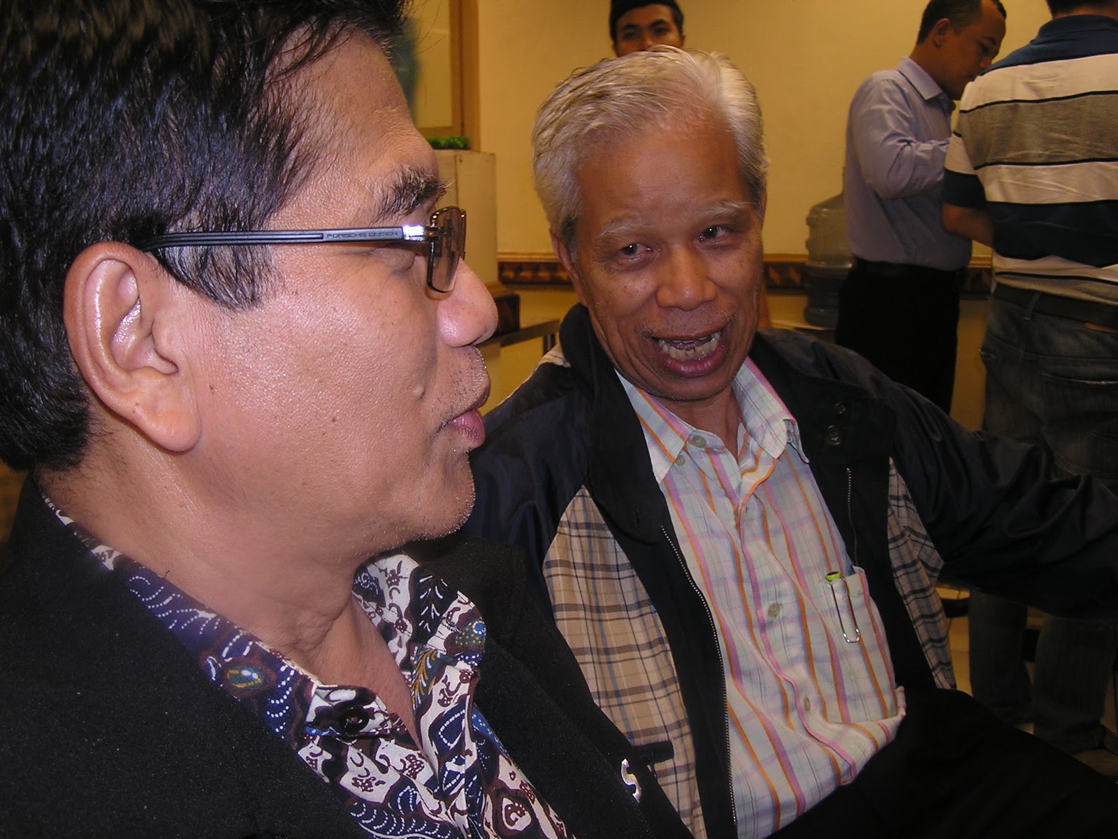 Bahari Abd Rahman (kiri0 berbual mesra dengan suami Elina Widyastuty, Soemarsono ketika makan malam di Jalan Sabang Jakarta, 13 Januari 2012. Macam dah kenal lama je hehe....